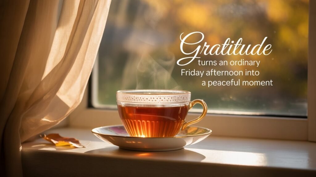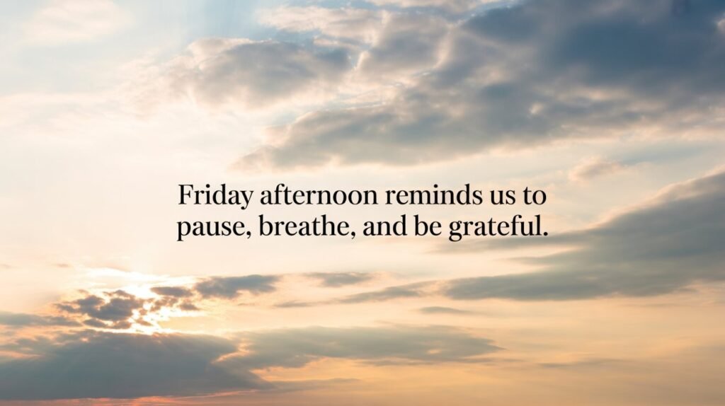 Friday afternoon images help us slow down after a busy week. They remind us to pause and notice the good things around us. Simple words and peaceful visuals bring calm to the heart. They gently guide our thoughts toward thankfulness instead of stress.